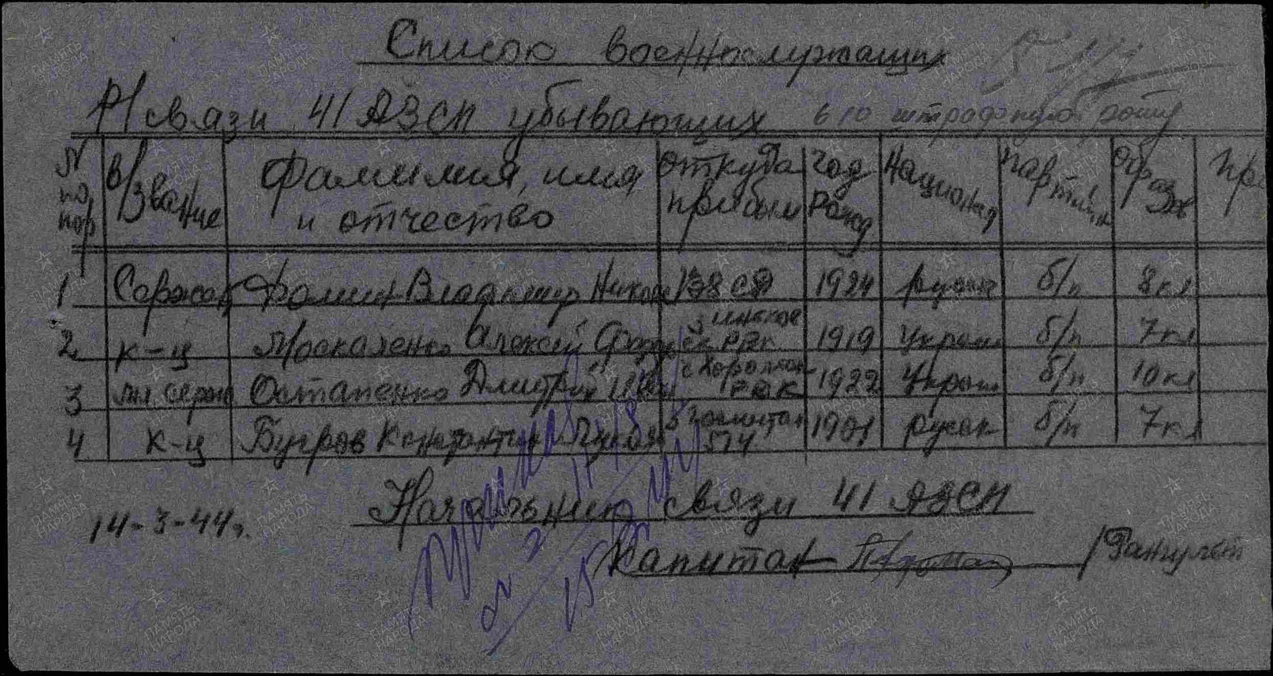 БУГРОВ КОНСТАНТИН ЛУКЬЯНОВИЧ (красноармеец) (1901- 1944) Родился в Саратовской обл., Кистендейский р-н, к/з 20 лет Октября. Проходил службу в 52 – армии, 10 отдельном штрафном воинском подразделении, фронтового подчинения, вооружённых сил СССР в Великой Отечественной войне. Похоронен в Румынии, г. Яссы, около д. Дорубанц. Погиб в бою 26.04.1944 г.